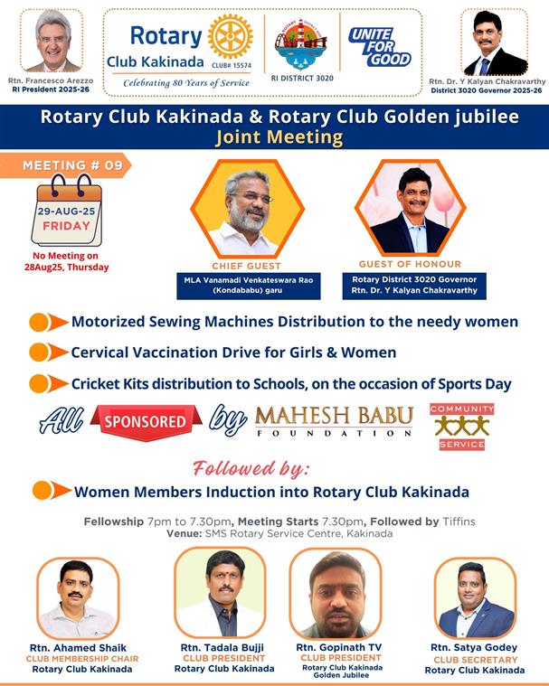 🌟 ROTARY CLUB KAKINADA 🌟 🤝 RI District 3020 | Unite for Good 📢 . . .