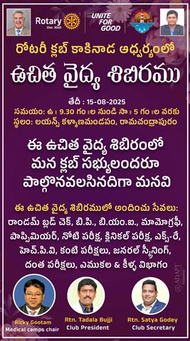 🌟 Grand Success of Free Medical Camp! 🌟 Rotary Club Kakinada suc. . .