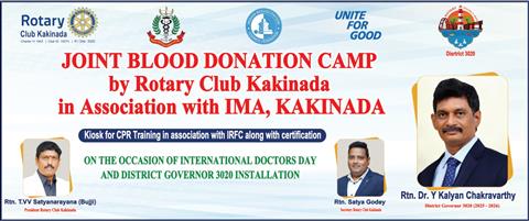 Rotary club Kakinada organised a blood donation camp in association. . .